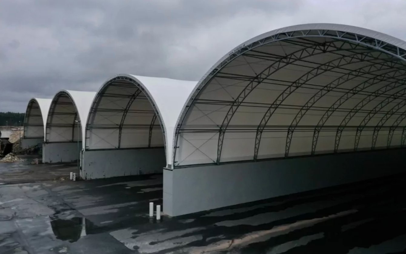 Les structures sont en acier recouvert d’une bâche PVC qui laisse passer près de 90% de la lumière naturelle en coloris blanc par exemple.