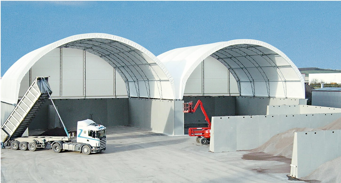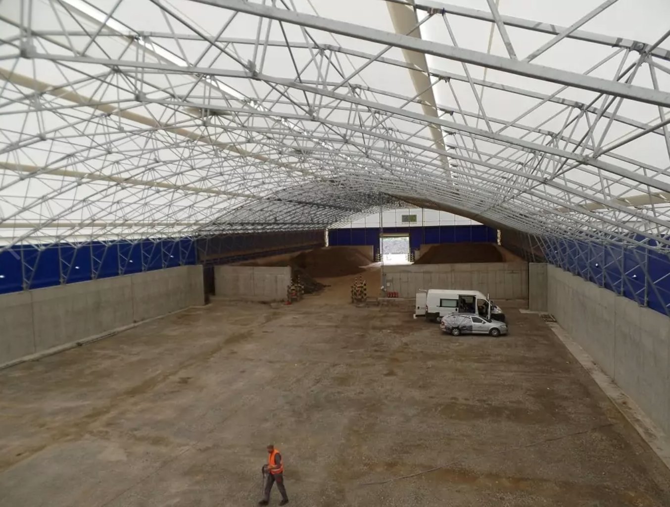 Il est possible de réaliser des bâtiments plus conséquents posés au sol et à l'intérieur desquels les murs de stockage seront posés (20 à 90 m de portée).