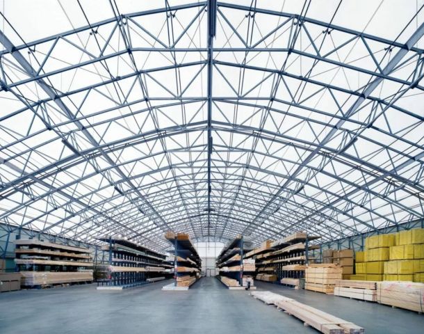 Ces bâtiments se posent sur des murs en béton banchés ou des murs de type LURA en acier jusque à des portées de 30/50 m.